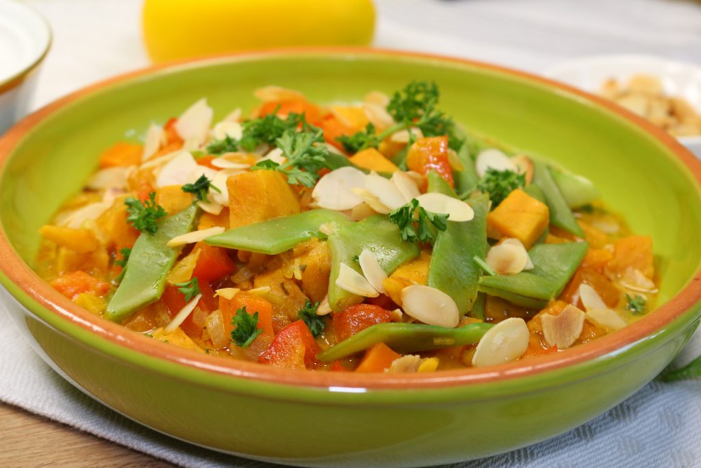 Geröstete Mandeln verleihen dem Gericht eine besonders aromatische Note, die in Verbindung mit der Kokosmilch für ein besonderes feines und exotisches Geschmackserlebnis sorgt.
