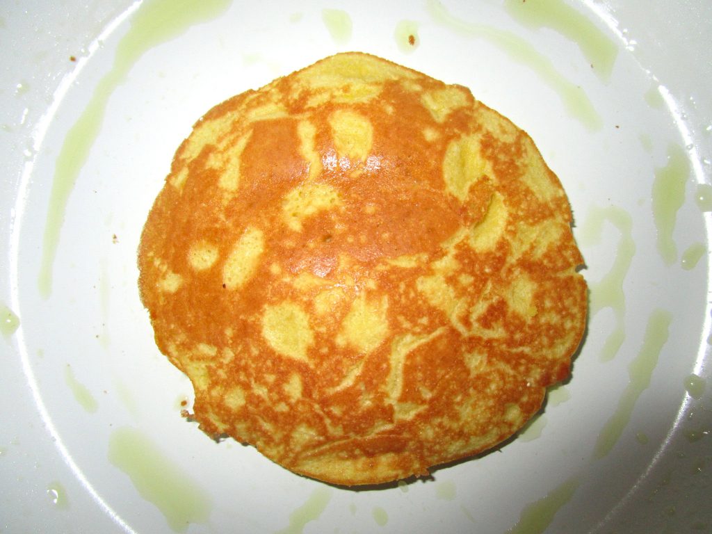 Der Teig ist etwas zäh und nicht elastisch, deshalb sollte man eher kleine Pfannkuchen machen, den es wäre schwer, große Pfannkuchen zu wenden.